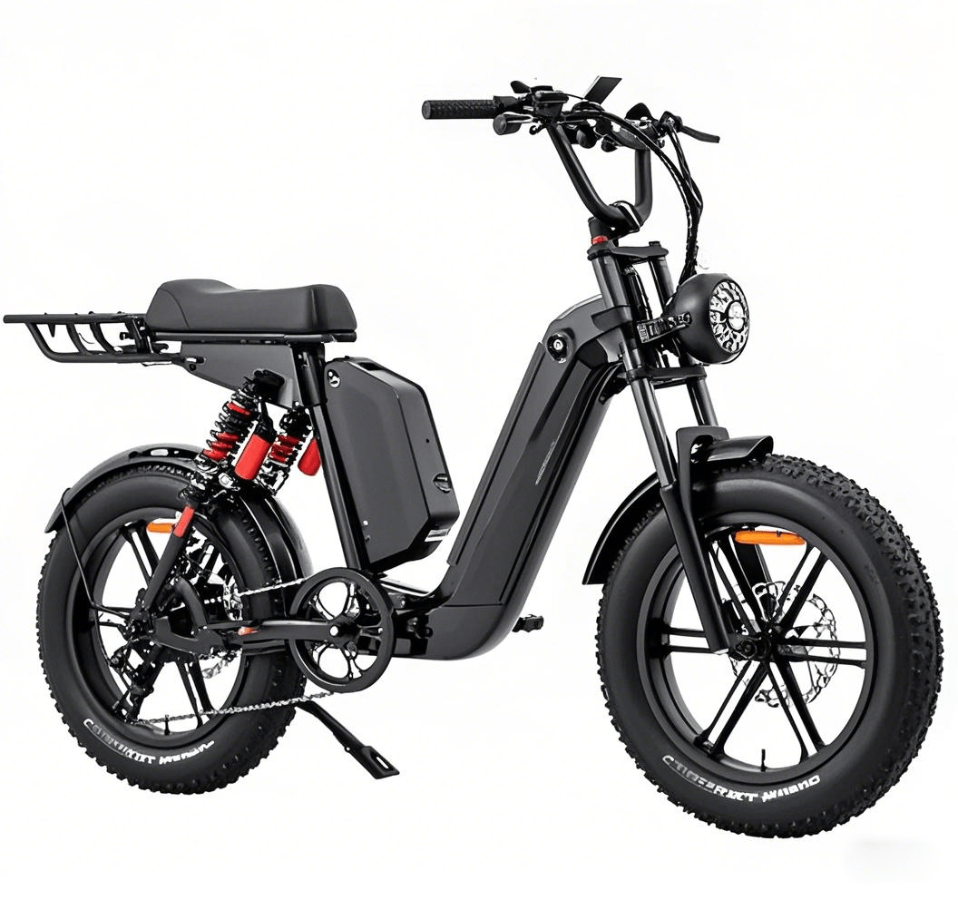 ✔ All-Terrain Capability – 20×4.0″ fat tires + front & rear suspension for stability on roads, mountains, or snow.